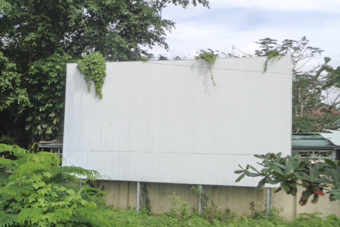 Bên cạnh Trường THCS Trần Đại Nghĩa (xã Diên Hòa, huyện Diên Khánh, Khánh Hòa) có dựng pa nô tuyên truyền nhưng bị cũ, bạc màu, mờ chữ, khó quan sát (ảnh).
