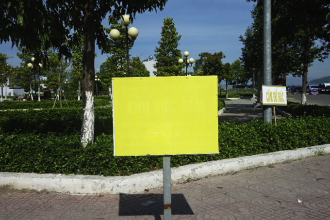 UBND thị trấn Diên Khánh có dựng bảng cấm buôn bán nơi hành lang đi bộ khu vực công viên Đài tưởng niệm, nhưng bảng đã bị cũ, bạc màu, mờ chữ, khó quan sát.