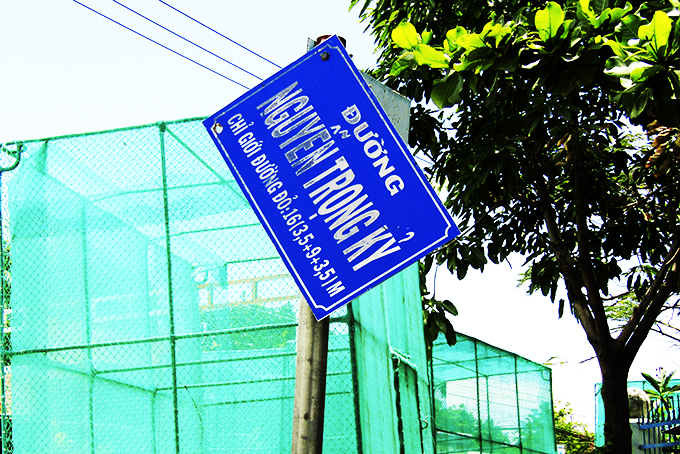Tại nơi giao cắt giữa đường Nguyễn Trọng Kỷ với đường Phan Bội Châu; đường Nguyễn Trường Tộ với đường Hùng Vương, TP, Cam Ranh có các biển báo tên đường bị mất bu lông gắn trụ làm biển bị nghiêng ngược.