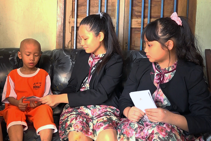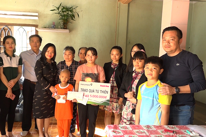 Sáng 9-1, Báo Khánh Hòa phối hợp với Ngân hàng TMCP Ngoại thương Việt Nam Chi nhánh Nha Trang (Vietcombank Nha Trang) đến thăm và trao 50 triệu đồng cho cháu Nguyễn Anh Tuấn Kiệt (sinh năm 2013), thôn Khánh Thành Nam, xã Suối Cát, huyện Cam Lâm - nhân vật trong bài viết "Xót xa gia cảnh cháu bé 7 tuổi bị u não".
