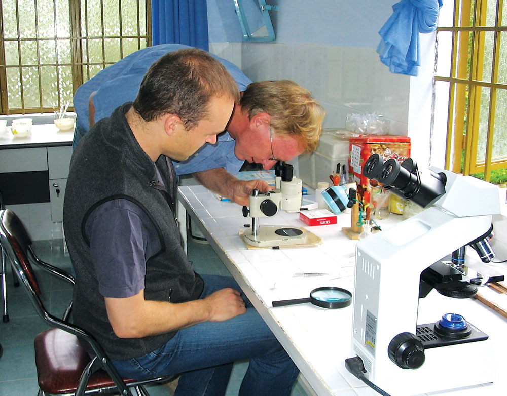 | Anh Ron và cộng sự nghiên cứu muỗi truyền bệnh sốt rét. |