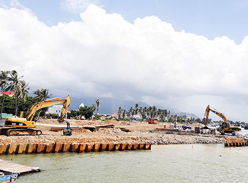 Thi công dự án kè bờ biển Vạn Giã (giai đoạn 1). |