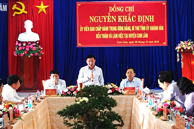 Ngày 26-12, ông Nguyễn Khắc Định - Ủy viên Trung ương Đảng, Bí thư Tỉnh ủy Khánh Hòa làm việc với Ban Thường vụ Huyện ủy Cam Lâm về tình hình kinh tế - xã hội của huyện. Cùng dự buổi làm việc có ông Lê Hữu Hoàng - Phó Chủ tịch UBND tỉnh và lãnh đạo các sở, ban, ngành.