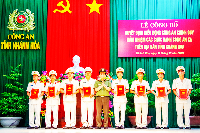 Giám đốc Công an tỉnh Khánh Hòa trao quyết định điều động công an chính quy về đảm nhiệm các chức danh công an xã. |