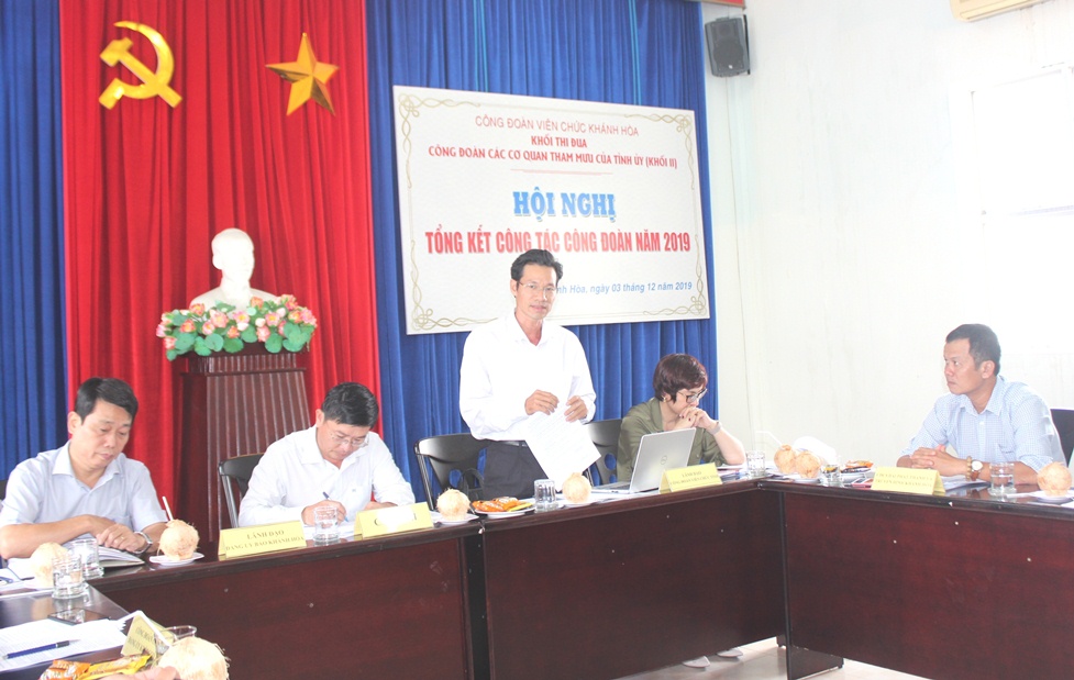 Chiều 3-12, Công đoàn cơ sở Báo Khánh Hòa – đơn vị trưởng Khối thi đua Công đoàn các cơ quan tham mưu của Tỉnh ủy (Khối II) tổ chức hội nghị tổng kết công tác năm 2019. Đến dự có đại diện Công đoàn Viên chức tỉnh và các đơn vị trong khối.