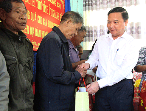Tại đây, Bí thư Tỉnh ủy Nguyễn Khắc Định đã trao 10 phần quà Tết cho 10 hộ gia đình chính sách tiêu biểu của huyện, mỗi phần quà trị giá 1,3 triệu đồng (gồm 1 triệu đồng tiền mặt và 300.000 đồng tiền quà). Ông Nguyễn Khắc Định và lãnh đạo Văn phòng Đoàn Đại biểu Quốc hội tỉnh cũng đã trao 50 phần quà Tết của Đoàn Đại biểu Quốc hội tỉnh cho 50 gia đình chính sách huyện Khánh Sơn, mỗi phần quà trị giá 600.000 đồng (gồm 500.000 đồng tiền mặt và 100.000 tiền quà - do Quỹ Thiện Tâm Tập đoàn VinGroup tài trợ).