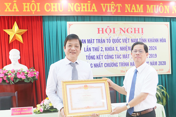 Nhân dịp này, Thủ tướng Chính phủ tặng bằng khen cho ông Huỳnh Mộng Giang - Phó Chủ tịch Thường trực UBMTTQ Việt Nam tỉnh; Ủy ban Trung ương MTTQ Việt Nam tặng bằng khen cho 1 tập thể, 1 cá nhân; UBMTTQ Việt Nam tỉnh tặng cờ thi đua cho UBMTTQ Việt Nam TP. Nha Trang, tặng bằng khen cho 28 tập thể, 19 cá nhân có thành tích xuất sắc.