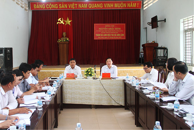 Tại buổi làm việc, lãnh đạo địa phương cho biết, đến nay, xã đã đạt 10/19 tiêu chí nông thôn mới, dự kiến đến cuối năm 2020 sẽ đạt thêm 3 tiêu chí. Đảng ủy xã đã cơ bản hoàn thành các văn kiện trình Đại hội Đảng bộ xã, nhiệm kỳ 2020 - 2025… Lãnh đạo địa phương kiến nghị tỉnh quan tâm nâng cấp chợ xã Sơn Lâm; bóc tách đất tiểu khu 266 tạo điều kiện cho các hộ dân canh tác ổn định lâu nay; xây dựng cầu Ko Róa qua trục Tỉnh lộ 9 từ xã Sơn Lâm đi xã Thành Sơn; xây dựng trụ sở làm việc của Công an xã.