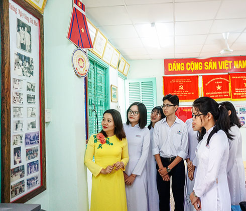 Cô và trò Trường THPT Nguyễn Văn Trỗi ôn lại truyền thống nhà trường.