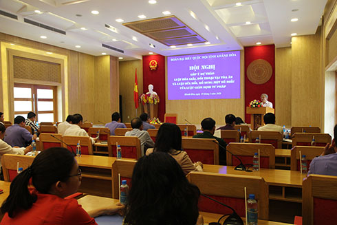 Chiều 5-3, ông Lê Xuân Thân - Trưởng Đoàn Đại biểu Quốc hội tỉnh, Phó Chủ tịch HĐND tỉnh Khánh Hoà chủ trì hội nghị góp ý 2 dự thảo: Luật sửa đổi, bổ sung một số điều của Luật Giám định tư pháp (GĐTP) và Luật Hoà giải, đối thoại tại toà án (viết tắt là Luật HGĐT).