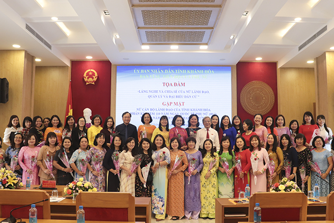 Nhân kỷ niệm 110 năm ngày Quốc tế Phụ nữ 8-3 và 1980 năm khởi nghĩa Hai Bà Trưng, sáng 6-3, Ban Vì sự tiến bộ của phụ nữ tỉnh Khánh Hòa tổ chức buổi gặp mặt nữ cán bộ lãnh đạo của tỉnh và tọa đàm "Lắng nghe và chia sẻ của nữ lãnh đạo, quản lý và đại biểu bầu cử".
