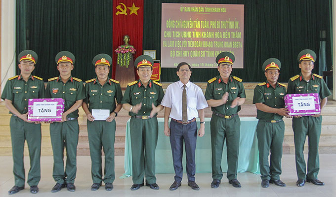 Chiều 19-3, ông Nguyễn Tấn Tuân - Phó Bí thư Tỉnh ủy, Chủ tịch UBND tỉnh Khánh Hòa đã đến thăm và làm việc với Tiểu đoàn Bộ binh 460, Bộ Chỉ huy Quân sự (CHQS) tỉnh.