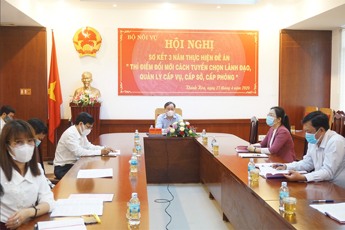 Ngày 27-4, Bộ Nội vụ phối hợp với Ban Tổ chức Trung ương tổ chức hội nghị trực tuyến toàn quốc sơ kết 3 năm thực hiện Đề án thí điểm đổi mới cách tuyển chọn lãnh đạo, quản lý cấp vụ, cấp sở, cấp phòng. Tại Khánh Hòa, ông Nguyễn Đắc Tài - Phó Chủ tịch Thường trực UBND tỉnh cùng lãnh đạo một số đơn vị, địa phương liên quan dự hội nghị.