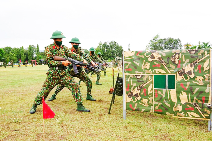 Sau thời gian thực hiện các quy định giãn cách xã hội nhằm phòng, chống dịch Covid-19, những ngày đầu tháng 5, các tân binh tại Tiểu đoàn Bộ binh 460 lại tiếp tục ra thao trường để huấn luyện. Bảng khẩu hiệu “Vượt nắng, thắng mưa, say sưa luyện tập” trên thao trường, bãi tập như một sự cổ vũ, động viên tinh thần để các tân binh và cán bộ, chiến sĩ đơn vị thêm quyết tâm huấn luyện trong điều kiện thời tiết nắng nóng. Từng động tác nhanh nhẹn, dứt khoát khi thực hiện nội dung huấn luyện các bài bắn súng AK hay sự cẩn trọng, chính xác đối với 3 môn tiếng nổ như ném lựu đạn, gói buộc thuốc nổ... của chiến sĩ mới đã thể hiện sự trưởng thành vượt bậc chỉ sau vài tháng nhập ngũ. Ai nấy đều tỏ rõ sự quyết tâm phấn đấu trong huấn luyện và thi đua đạt thành tích cao trong các bài kiểm tra kết thúc các khoa mục huấn luyện. Tân binh Ngô Chí Hiếu chia sẻ: “Trước khi viết đơn tình nguyện nhập ngũ, tôi đã ý thức được môi trường quân đội có kỷ luật cao, vì thế sẽ giúp tôi rèn luyện bản lĩnh và trưởng thành hơn về mọi mặt. Vào môi trường quân đội, tôi không chỉ được giáo dục về tư tưởng, rèn luyện về thể lực mà còn được huấn luyện nhiều nội dung quan trọng. Bản thân tôi luôn nỗ lực rèn luyện, phấn đấu hoàn thành tốt khóa huấn luyện chiến sĩ mới cũng như mọi nhiệm vụ trong thời gian tại ngũ”.