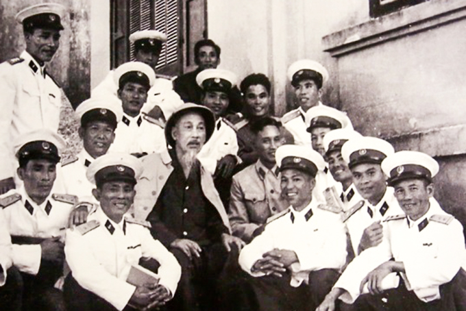 Bác Hồ thăm bộ đội hải quân ở vùng Đông Bắc của Tổ quốc (năm 1959). |