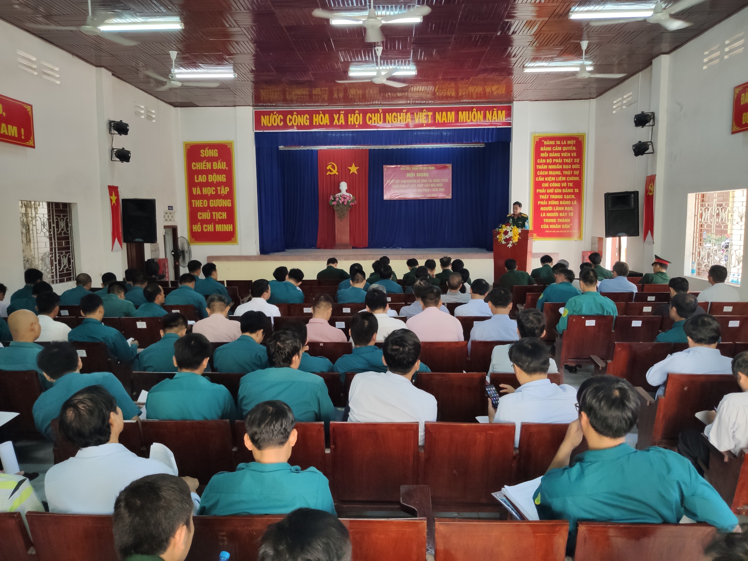 Chiều 20-7, Ban Chỉ huy Quân sự thành phố Nha Trang tổ chức hội nghị sơ kết rút kinh nghiệm về công tác huấn luyện, chấp hành kỷ luật, pháp luật và an toàn quân đội giai đoạn I năm 2020.