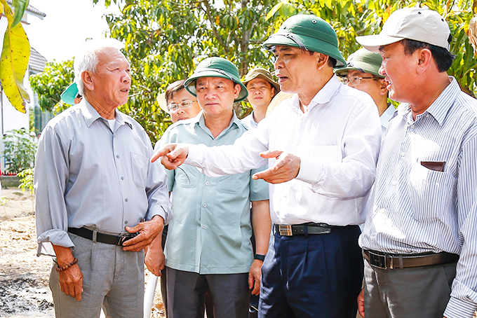 Bộ trưởng Nguyễn Xuân Cường khảo sát tại vùng xoài Cam Lâm. |