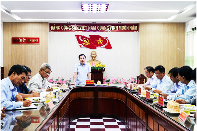 Sáng 8-7, ông Hà Quốc Trị - Phó Bí thư Tỉnh ủy làm việc với Ban Thường vụ Huyện ủy Vạn Ninh về tình hình đền bù giải tỏa thực hiện dự án đường Quốc lộ 1 đi Đầm Môn và công tác quản lý rừng ngập mặn Tuần Lễ.