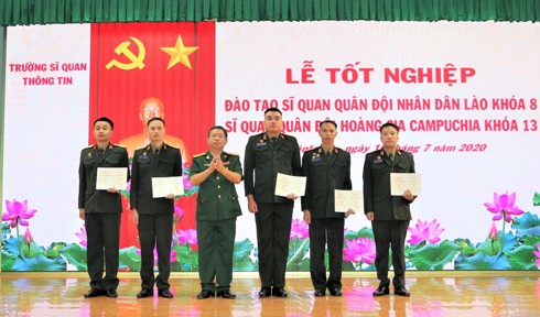 Sáng 16-7, Trường Sĩ quan Thông tin tổ chức lễ tốt nghiệp cho 18 học viên đào tạo sĩ quan Quân đội nhân dân Lào khóa 8 và Quân đội Hoàng gia Campuchia khóa 13.