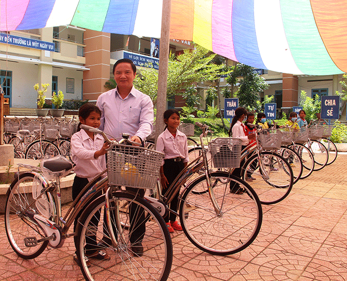 Bí thư Tỉnh ủy Nguyễn Khắc Định và lãnh đạo các đơn vị đã trao 100 chiếc xe đạp, mỗi chiếc trị giá 1,4 triệu đồng cho các em học sinh nghèo, có hoàn cảnh khó khăn, đạt thành tích cao trong học tập; tổng giá trị của hoạt động lần này là 140 triệu đồng.