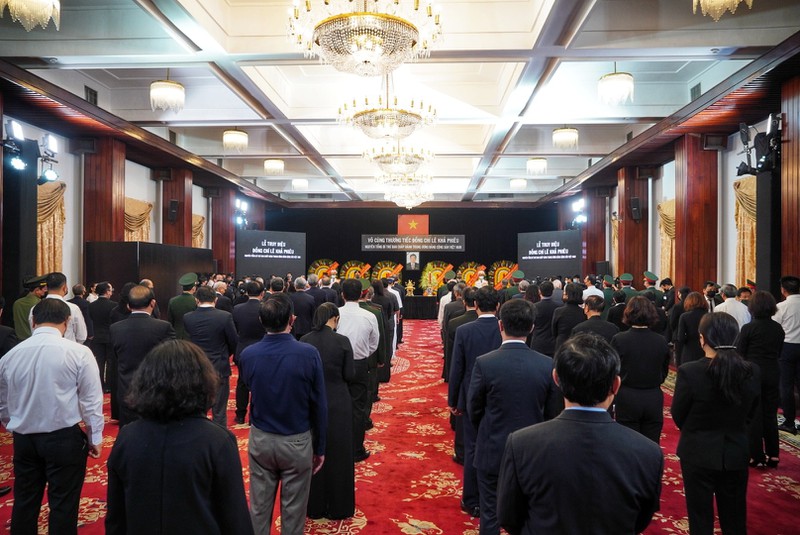 Cùng thời điểm, lễ truy điệu nguyên Tổng Bí thư Lê Khả Phiêu cũng diễn ra tại Hội trường Thống Nhất, TP. Hồ Chí Minh.