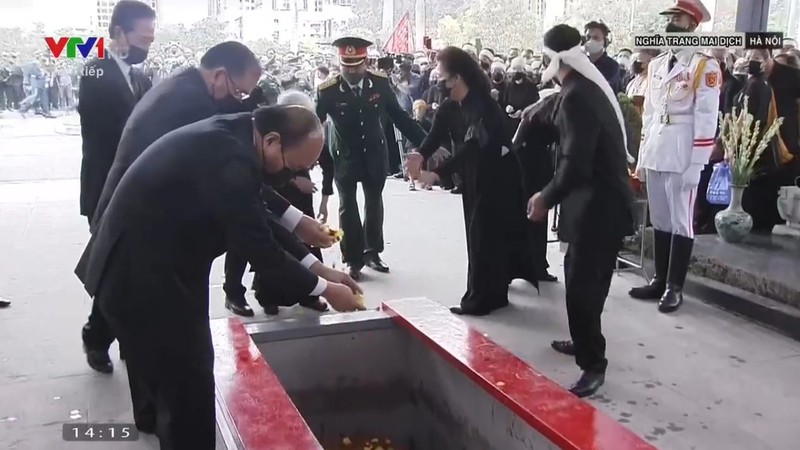 Các nghi thức tại Lễ an táng nguyên Tổng Bí thư Lê Khả Phiêu ở nghĩa trang Mai Dịch.