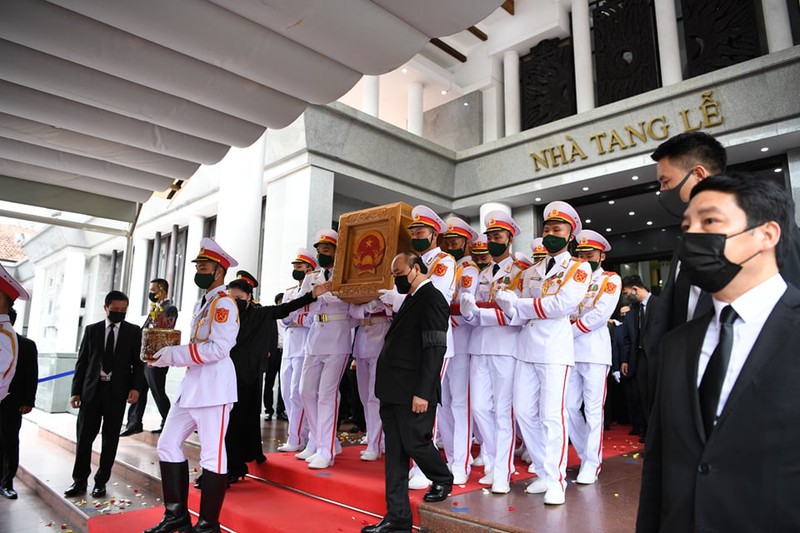 Lễ truy điệu kết thúc. Các vị lãnh đạo, nguyên lãnh đạo Đảng, Nhà nước và đại diện gia đình đi vòng quanh linh cữu.