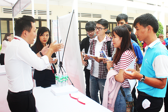 Doanh nghiệp tư vấn tuyển dụng lao động trong phiên giao dịch việc làm được tổ chức tại Nha Trang. |
