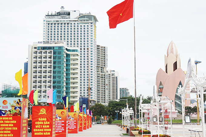 Khu vực Quảng trường 2-4 (TP. Nha Trang) được trang trí, tuyên truyền trực quan chào mừng đại hội. |
