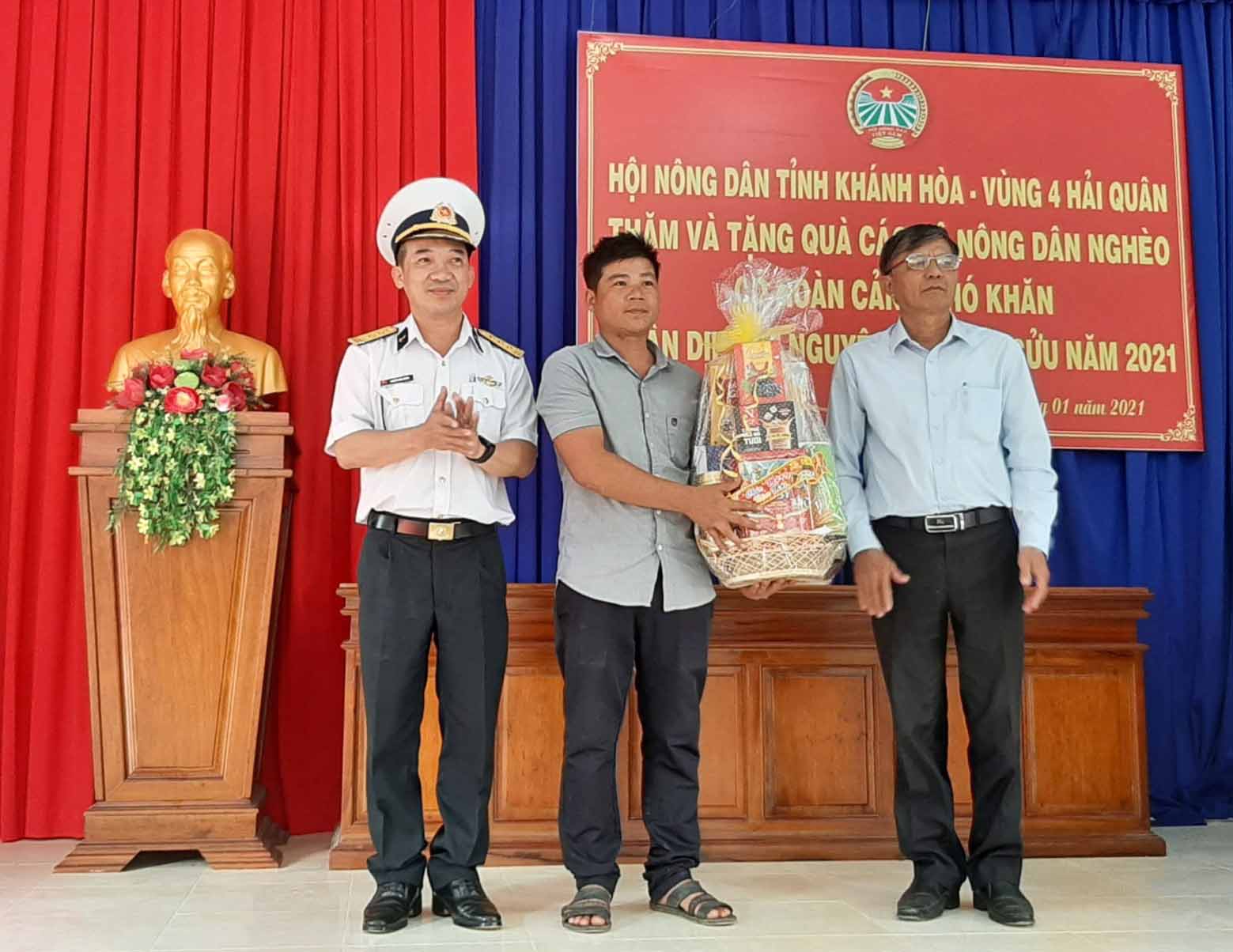 Hưởng ứng Chương trình “Tết cho người nghèo năm 2021” của UBND tỉnh Khánh Hòa, sáng 26-1, Lữ đoàn 955, Vùng 4 Hải quân phối hợp với Hội Nông dân tỉnh thăm, chúc Tết và tặng quà các gia đình chính sách và hộ nghèo trên địa bàn xã Sông Cầu, huyện Khánh Vĩnh.