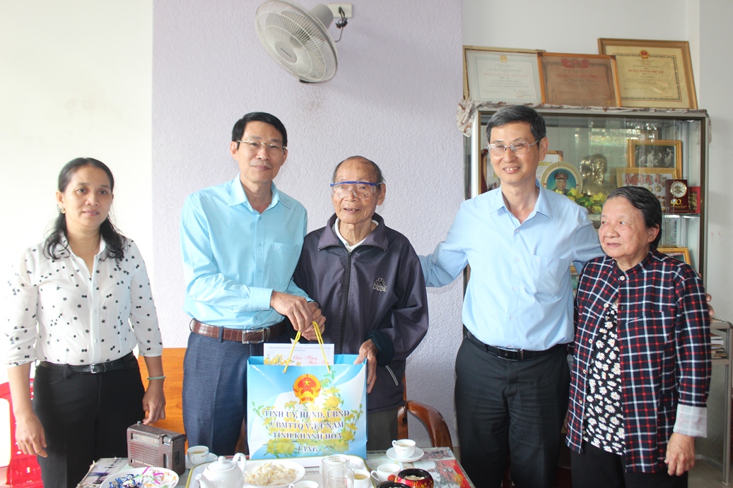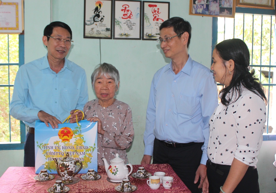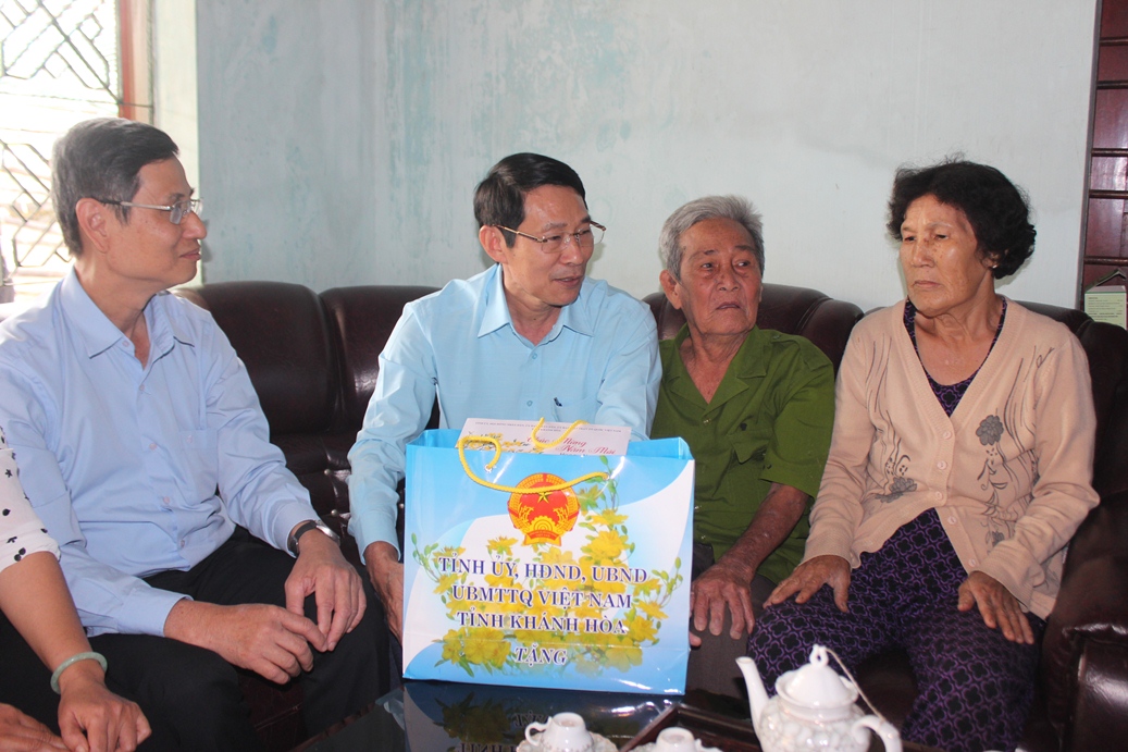 Sáng 26-1, ông Đinh Văn Thiệu - Phó Chủ tịch UBND tỉnh Khánh Hòa cùng lãnh đạo các sở, ngành, địa phương đến thăm, tặng quà, chúc Tết 4 gia đình chính sách tiêu biểu trên địa bàn huyện Diên Khánh gồm: Ông Nguyễn Văn Hiển, người hoạt động kháng chiến bị nhiễm chất độc hóa học (thị trấn Diên Khánh); bà Nguyễn Thị Trang, thương binh, người hoạt động kháng chiến bị nhiễm chất độc hóa học, tù đày (xã Diên An); ông Nguyễn Văn Ry, người hoạt động kháng chiến bị nhiễm chất độc hóa học, tù đày (xã Diên Phú); bà Đỗ Thị Hương, người có công giúp đỡ cách mạng (xã Diên Lạc).
