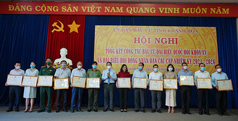 Dịp này, 43 tập thể, 78 cá nhân có thành tích xuất sắc trong công tác tổ chức bầu cử đại biểu Quốc hội khóa XV và đại biểu HĐND các cấp nhiệm kỳ 2021 - 2026 đã được Chủ tịch UBND tỉnh Khánh Hòa tặng bằng khen.