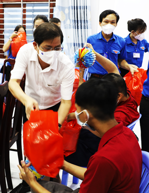 Chiều 17-9, ông Nguyễn Tấn Tuân cùng lãnh đạo Tỉnh đoàn đến thăm, động viên và trao quà cho các em nhỏ tại Mái ấm Anh Đào, Trung tâm Bảo trợ xã hội và công tác xã hội thị xã Ninh Hòa nhân dịp Tết Trung thu.