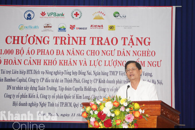 Chiều 11-9, thực hiện Chương trình vận động tặng áo phao cứu sinh đa năng của nguyên Chủ tịch nước Trương Tấn Sang, Hội Chữ thập đỏ tỉnh Khánh Hòa phối hợp với TP. Cam Ranh trao tặng áo phao cứu sinh đa năng và lương thực, thực phẩm cho ngư dân có hoàn cảnh khó khăn tại TP. Cam Ranh và lực lượng kiểm ngư. Đến dự có ông Nguyễn Tấn Tuân - Phó Bí thư Tỉnh ủy, Chủ tịch UBND tỉnh.