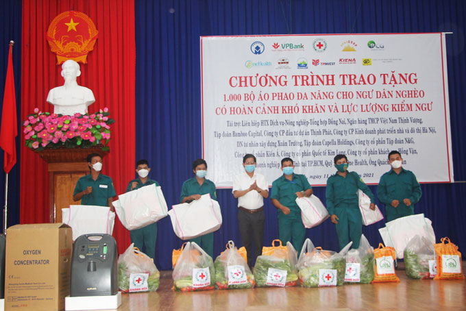 Tại chương trình, Hội Chữ thập đỏ tỉnh đã trao tặng 160 bộ áo phao cứu sinh đa năng, trị giá 1.400.000 đồng/bộ; 1,6 tấn gạo; 1 tấn rau, củ, quả cho các ngư dân là hộ nghèo, cận nghèo, có hoàn cảnh khó khăn bị ảnh hưởng bởi dịch Covid-19 và các kiểm ngư trên địa bàn TP. Cam Ranh.