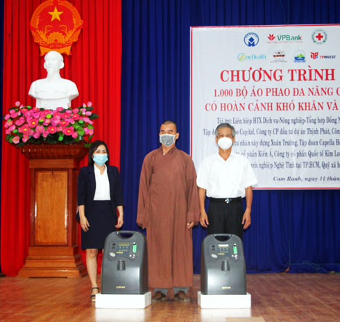 Nhân dịp này, chùa Nghĩa Đạo (phường Vĩnh Hải, TP. Nha Trang) tặng 2 máy thở cho Bệnh viện Đa khoa khu vực TP. Cam Ranh.
