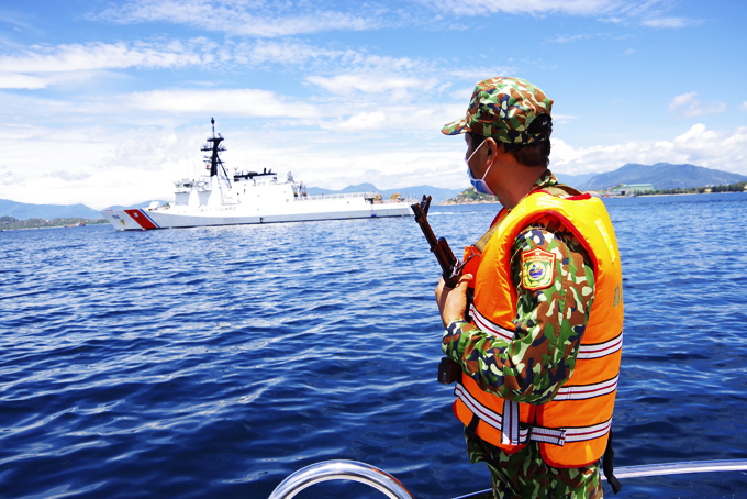 Lực lượng Đồn Biên phòng Cửa khẩu cảng Nha Trang tuần tra trên vịnh Nha Trang. |