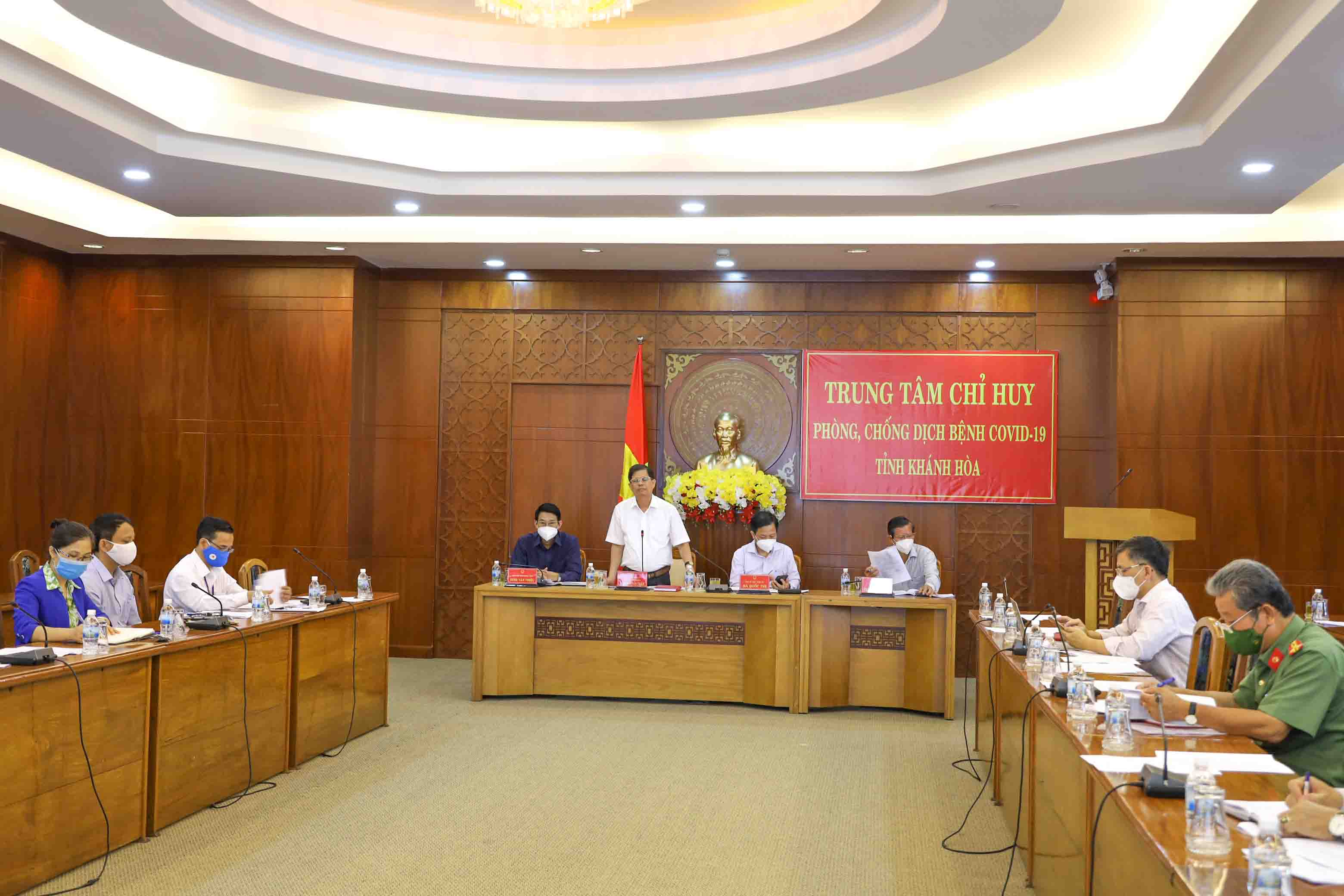 Sáng 6-10, ông Nguyễn Tấn Tuân - Phó Bí thư Tỉnh ủy, Chủ tịch UBND tỉnh Khánh Hòa chủ trì cuộc họp với Ban Chỉ đạo phong trào Toàn dân tham gia xây dựng địa bàn an toàn trong phòng, chống dịch Covid-19.