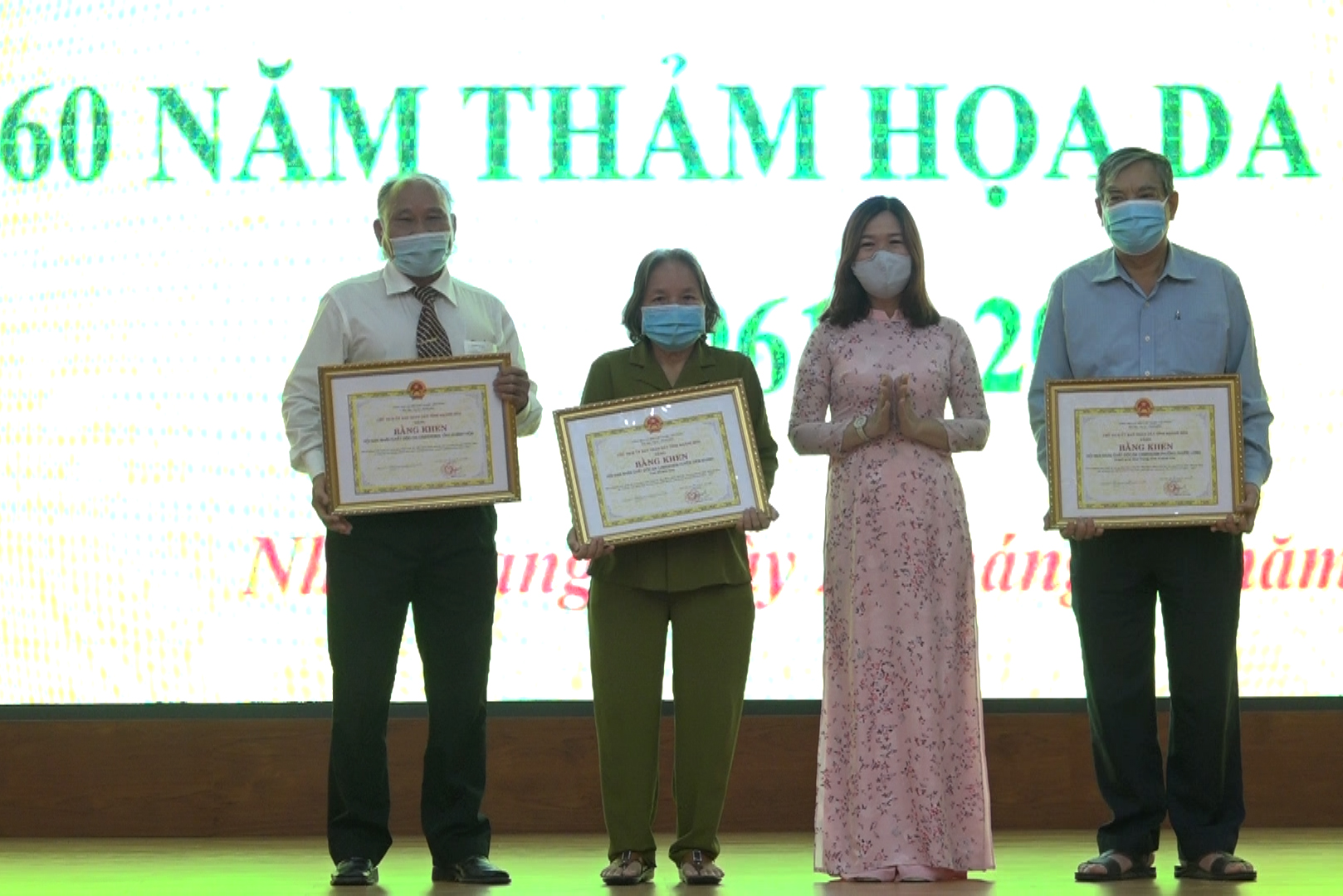 Tại lễ kỷ niệm, Trung ương Hội Nạn nhân chất độc da cam/dioxin Việt Nam tặng bằng khen cho 11 tập thể và cá nhân; tặng Kỷ niệm chương “Vì nạn nhân chất độc da cam/dioxin" cho 7 cá nhân. Nhiều tập thể, cá nhân đã được nhận Bằng khen của UBND tỉnh, giấy khen của Hội nạn nhân chất độc da cam/dioxin tỉnh. Cũng tại buổi lễ, Hội Nạn nhân chất độc da cam/dioxin tỉnh phối hợp với Hội Chữ thập đỏ tỉnh trao 5 phần quà cho nạn nhân chất độc da cam thế hệ thứ 2.