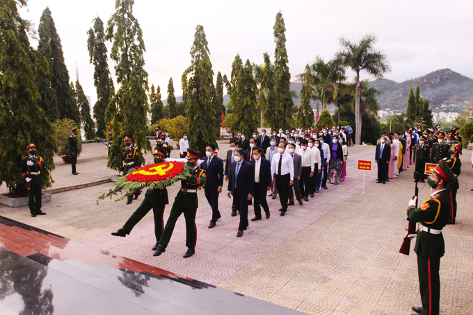 Đoàn đại biểu Ban Chấp hành Đảng bộ tỉnh do ông Nguyễn Hải Ninh - Ủy viên Trung ương Đảng, Bí thư Tỉnh ủy dẫn đầu, vòng hoa mang dòng chữ “Đảng, Nhà nước, nhân dân ghi nhớ công ơn các liệt sĩ”; tiếp đó là các đoàn đại biểu HĐND và UBND tỉnh do ông Nguyễn Tấn Tuân - Phó Bí thư Tỉnh ủy, Chủ tịch UBND tỉnh dẫn đầu; đoàn đại biểu UBMTTQ Việt Nam tỉnh do ông Trần Ngọc Thanh - Chủ tịch UBMTTQ Việt Nam tỉnh, Trưởng ban Dân vận Tỉnh ủy dẫn đầu; đoàn đại biểu các lực lượng vũ trang tỉnh do Đại tá Bùi Đại Thắng - Chỉ huy trưởng Bộ Chỉ huy Quân sự tỉnh dẫn đầu; đoàn đại biểu Thành ủy, HĐND, UBND, UBMTTQ Việt Nam TP. Nha Trang do ông Hồ Văn Mừng - Ủy viên dự khuyết Trung ương Đảng, Bí thư Thành ủy Nha Trang dẫn đầu.