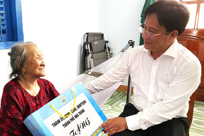 Đoàn Thanh niên các đơn vị trao quà cho các hộ dân ở phường Ninh Hải, thị xã Ninh Hòa. Ảnh NAM KHÁNH |
