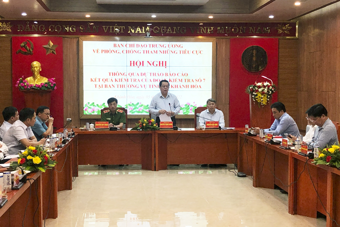 Sáng 5-8, Đoàn kiểm tra số 7 của Ban Chỉ đạo Trung ương về phòng, chống tham nhũng (PCTN), tiêu cực do ông Nguyễn Trọng Nghĩa - Bí thư Trung ương Đảng, Trưởng ban Tuyên giáo Trung ương, Ủy viên Ban Chỉ đạo Trung ương về PCTN, tiêu cực làm Trưởng đoàn; Trung tướng Nguyễn Duy Ngọc - Thứ trưởng Bộ Công an là Phó Trưởng đoàn đã công bố dự thảo báo cáo kết quả kiểm tra công tác PCTN, tiêu cực tại Ban Thường vụ Tỉnh ủy Khánh Hòa. Tiếp nhận công bố có các ông: Nguyễn Hải Ninh - Ủy viên Trung ương Đảng, Bí thư Tỉnh ủy; Nguyễn Khắc Toàn - Phó Bí thư Thường trực Tỉnh ủy, Chủ tịch HĐND tỉnh; Nguyễn Tấn Tuân - Phó Bí thư Tỉnh ủy, Chủ tịch UBND tỉnh, cùng các vị trong Ban Thường vụ Tỉnh ủy.