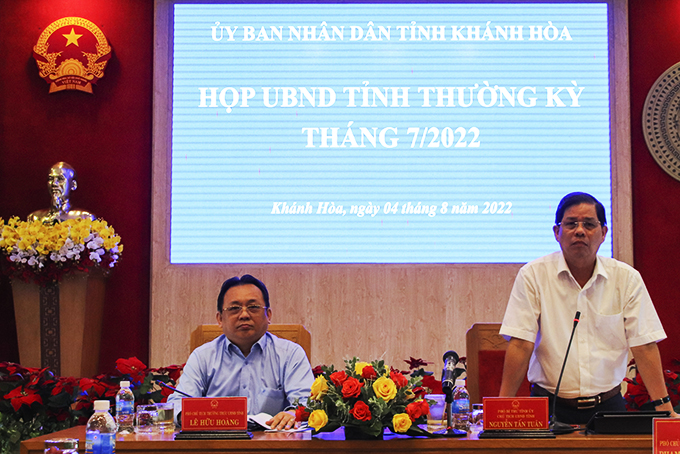 Sáng 4-8, các ông: Nguyễn Tấn Tuân - Phó Bí thư Tỉnh ủy, Chủ tịch UBND tỉnh Khánh Hòa; Lê Hữu Hoàng - Phó Chủ tịch Thường trực UBND tỉnh; Nguyễn Anh Tuấn - Phó Chủ tịch UBND tỉnh chủ trì họp thường kỳ UBND tỉnh tháng 7-2022. Cùng dự có bà Phạm Thị Xuân Trang - Phó Chủ tịch HĐND tỉnh.
