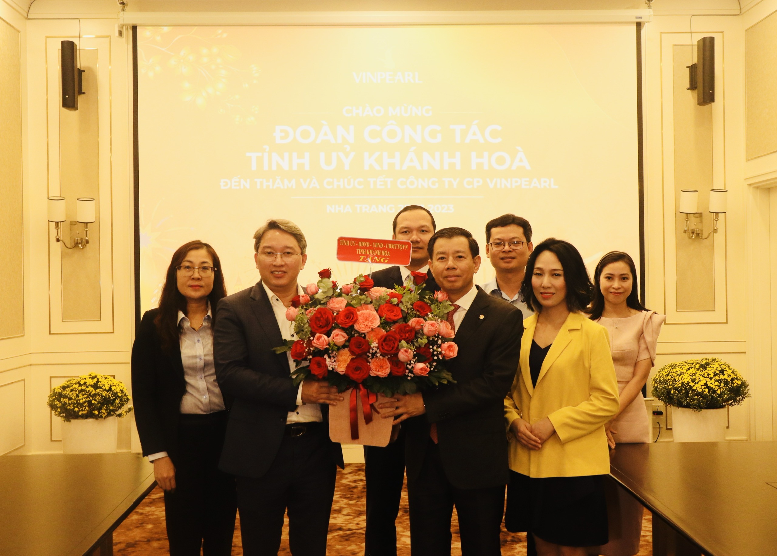 Báo cáo với Bí thư Tỉnh ủy, ông Nguyễn Việt Quang - Phó Chủ tịch Tập đoàn Vingroup cho biết năm 2022, hệ thống Vinpearl và Vinwonders trên toàn quốc đã phục vụ hơn 7,5 triệu lượt khách tham quan, nghỉ dưỡng; hệ thống Vinpearl và Vinwonders cũng đã có sự phục hồi rất tốt trong năm qua. Riêng đợt Tết Dương lịch và Tết Nguyên đán 2023, các khách sạn, resort của Vinpearl Nha Trang đã đón hơn 23.000 lượt khách lưu trú, trong đó có hơn 12.000 lượt khách quốc tế và 11.000 lượt khách nội địa. Thay mặt Tập đoàn Vingroup và Công ty Cổ phần Vinpearl, ông Nguyễn Việt Quang cảm ơn sự quan tâm của lãnh đạo tỉnh Khánh Hòa trong thời gian qua, đồng thời mong muốn tỉnh tiếp tục tạo điều kiện để Vingroup đầu tư các dự án mới tại Khánh Hòa, hỗ trợ Công ty Cổ phần Vinpearl triển khai các sự kiện văn hóa giải trí để thu hút khách du lịch… Tương tự, lãnh đạo Công ty Truyền tải Điện 3, Vietcombank chi nhánh Khánh Hòa cũng đã báo cáo tình hình sản xuất - kinh doanh năm 2022 hoạt động trong đợt tết Nguyên Đán Quý Mão với những kết quả rất khả quan.