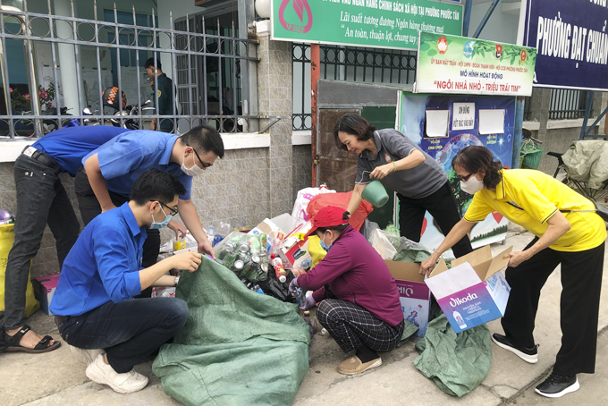 Mô hình thu gom rác “Ngôi nhà nhỏ - Triệu trái tim” ở phường Phước Tân. |