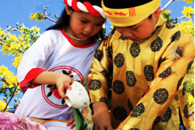 Những công dân nhí đảo Sinh Tồn vui đón Tết. |