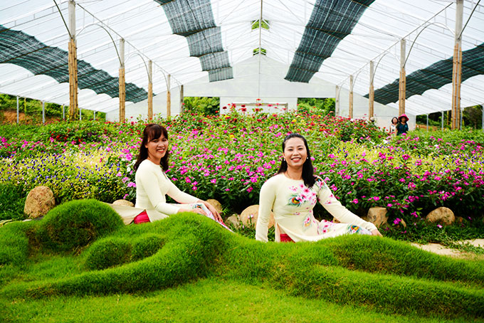 Du khách lưu giữ những hình ảnh đẹp tại vườn hoa nhiệt đới. |