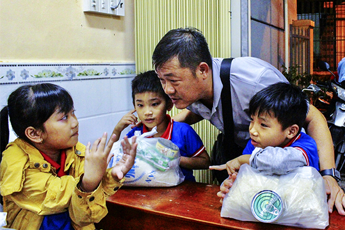 Sau nhiều lần lỡ hẹn, chúng tôi mới có dịp gặp gỡ anh Nguyễn Thành Thái - Trưởng nhóm “Khatoco và những người bạn” tại lớp học tình thương ở xóm Dốc, phường Vĩnh Phước, TP. Nha Trang cùng đội nhóm làm việc với anh. Thấy anh bước vào, các em trong lớp reo hò, mừng rỡ. Nhìn hình ảnh một người đàn ông đứng giữa đàn trẻ ríu rít xung quanh, gương mặt sáng ngời với những phần quà trên tay, ai cũng cảm thấy lòng ấm áp giữa tiết trời giá lạnh cuối năm.
