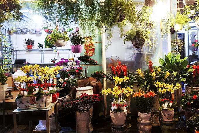 2. Vậy là ngồi giữa nơi xa mà nhớ. Thật lạ lùng là giữa rất nhiều thứ định vị cho mùi của Tết, này mứt, này bánh trái, giỏ quà bày bán đầy nhưng vẫn thấy hình như thế vẫn chưa đủ. Thêm chậu hoa nhỏ nữa, một sắc hoa thôi người ta mới thấy Tết về, mới thấy Tết đủ đầy, toàn vẹn.