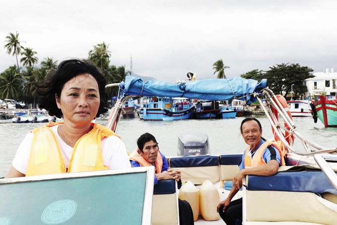 Chị Long luôn giúp đỡ người dân trên các đảo ở vịnh Vân Phong. |